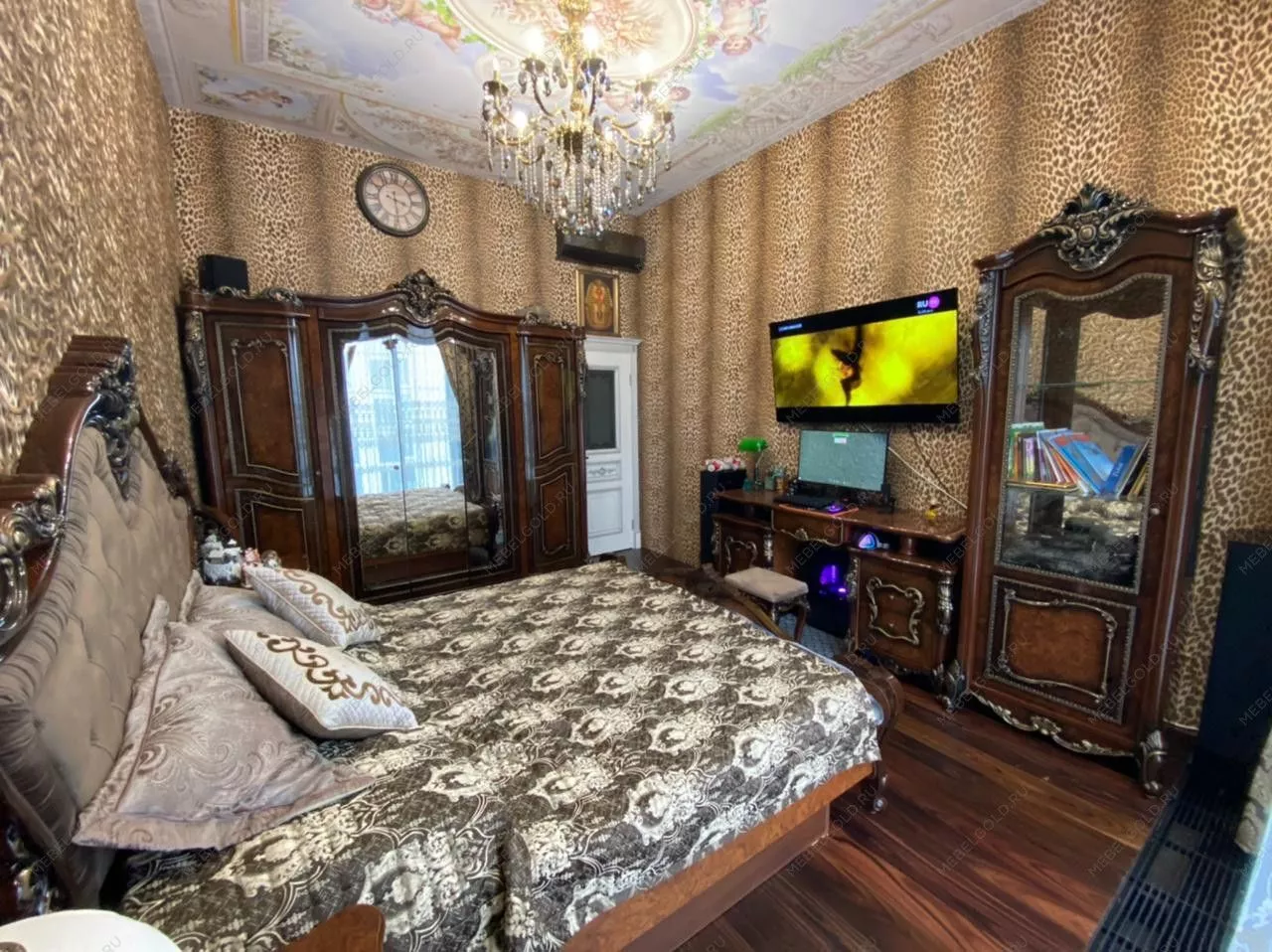 В основе изготовления гостиной «Джоконда» лежат изящные линии четко очерченного карандаша, объемные узоры с обилием завитков и позолоты. Большое внимание уделяется скругленным элементам. Уютная, по-домашнему приветливая – такой получилась гостевая мебель, результат кропотливых трудов российских дизайнеров. В ней доминирует изыск и тепло, преобладает обилие воздуха и красивых текстур. Каждый предмет напоминает антиквариат с потертостями и плавными линиями. В отделке применяется ручная роспись и золочение.