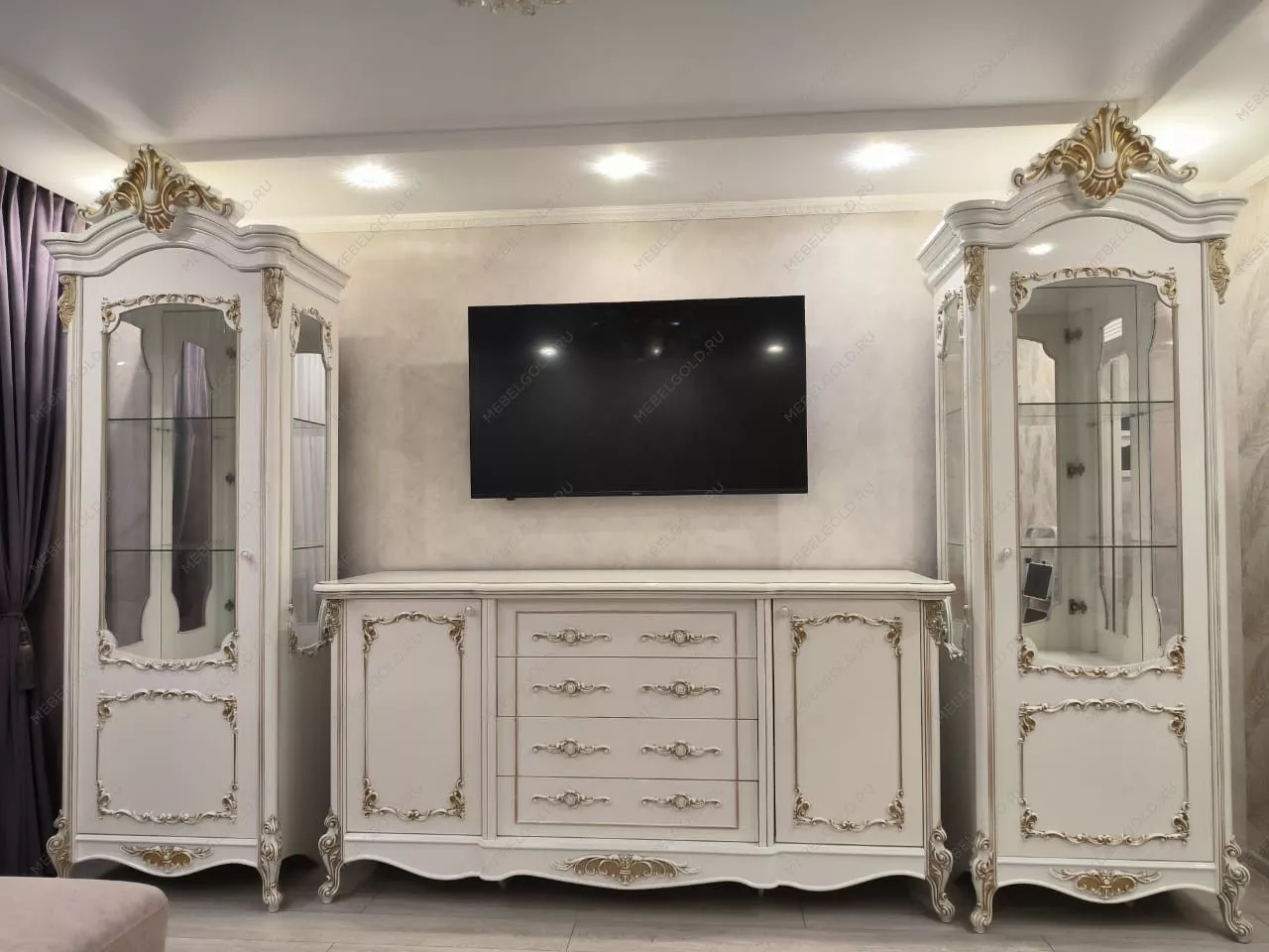 Декоративные элементы, фасады, накладки покрыты золотой патиной и матовым лаком