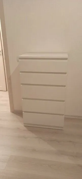Высокий, красивый, идеально встал в гардеробной, доставка. Сам комод понравился, похож на икею. Доводчиков нет, но закрывается плавно, не хлопает. Инструкция в комплекте, самой собрать не получилось, пришлось просить помощь. Доставили вовремя и всё приехало в целости, хорошая упаковка, до сборки каждая деталь была разделена картонкой и дополнительно упаковали плёнкой. Спасибо продавцу и курьеру за аккуратность в сборке и доставке.