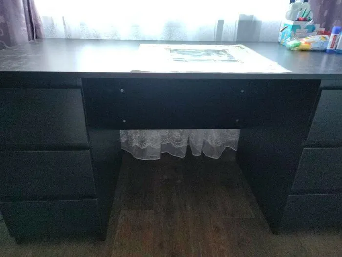 Отличный стол!. Отличный стол! Купили на замену Икее. Хорошая упаковка, легкая сборка, качественная столешница. Я очень довольна. Единственное, что меня огорчило, теперь не прикрутить к столу настольную лампу икеа, не хватает свободного края у столешницы.