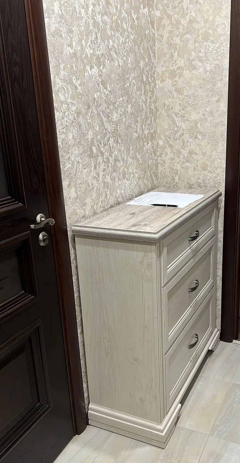 Заказали данный комод, т.к. были определённые трудности с размером места установки. Комод в живую в магазине не видели, но другие составляющие коллекции посмотрели. Приятно удивлена, что все сложилось буквально за «24 часа»: оплатили в магазине товар, оформили доставку на следующий день и ещё на следующий день запланировали сборщика, но сборщик позвонил в день доставки и предложил приехать все собрать не оставляя на завтра. Считаю, что это просто удача в наше время))) т.к. постоянно возникают какие-либо трудности с заказом/доставкой/установкой и сборкой мебели. В данном случае никаких проблем не возникло, что оставляет очень хорошие впечатления о магазине и работе сотрудников. Спасибо за комод и оперативность! Фото прилагаю