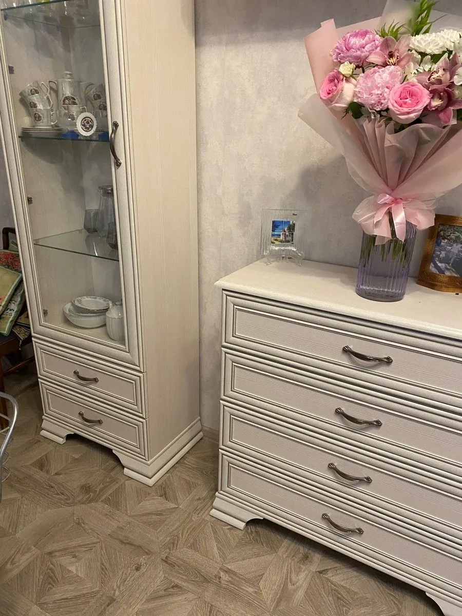 Красивый комод не плохое качество материала хорошие направляющие отлично подошел к моему серванту.Доставка быстрая. Сборщик собрал без проблем.