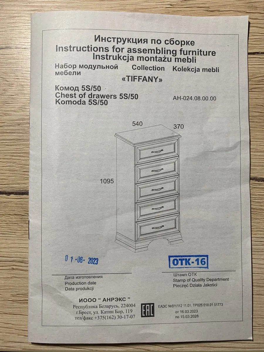 Комод красивый и качественный, смотрится прекрасно. Собирается быстро, подробная инструкция приложена. Качество материалов достойное, фурнитура качественная. Цвет больше к серому подходит я бы так сказала. Пришло все в срок, ребята занесли комод в квартиру, упаковано очень хорошо, переложены детали между собой пенопластом и бумагой, ничего не повреждено, все в целости и сохранности. Комод узкий и не глубокий, но в тоже время высокий, что оптимально для небольшого помещения. Мне он понравился, покупкой довольна. Рекомендую. Только положительные эмоции.
