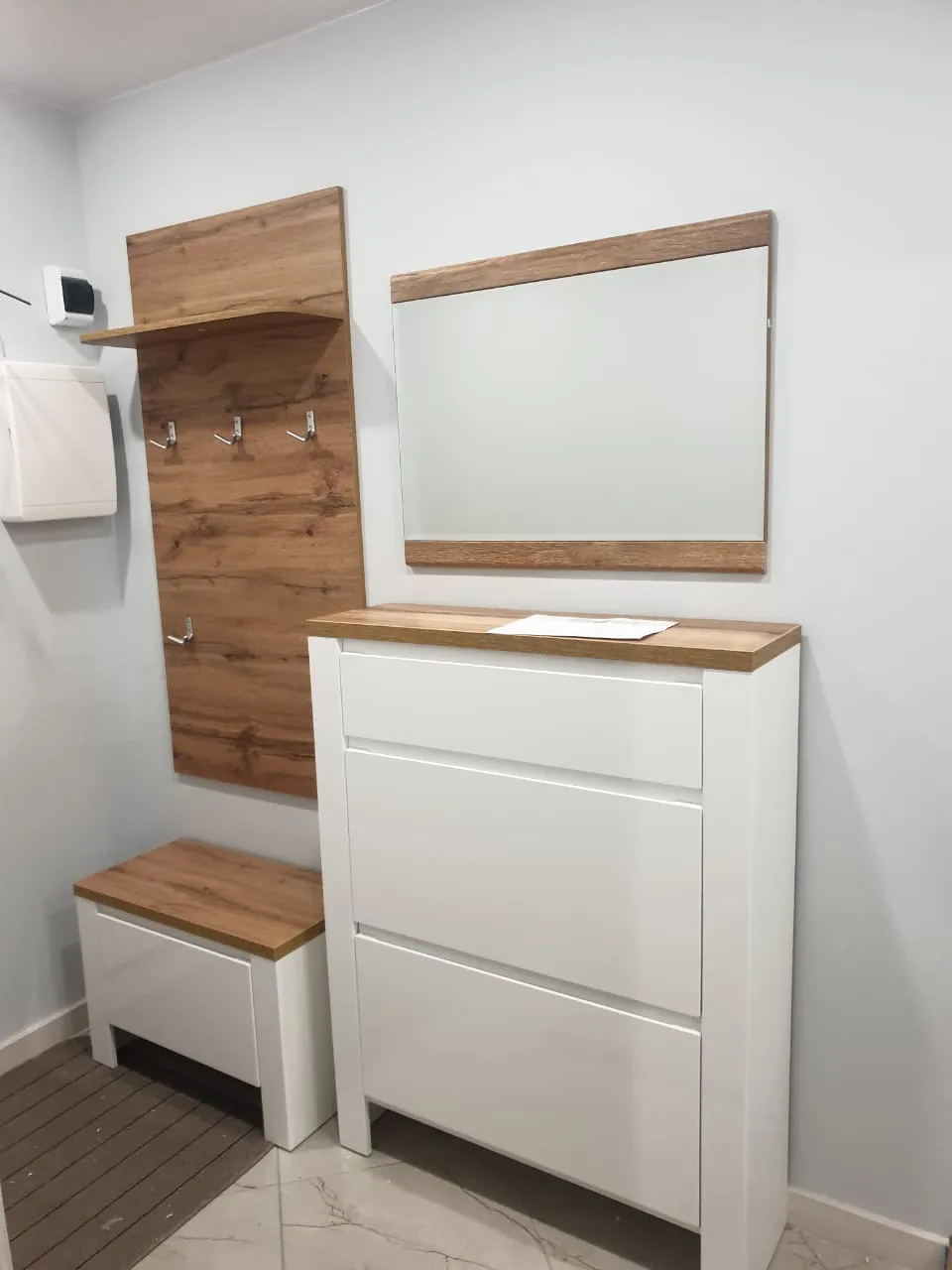 Долго присматривался к ассортименту магазина, искал что-то простое, но красивое. Наконец увидел эту прихожую. Белый цвет мебели добавил много света. Отдельно отмечу вместительность: большая семья у нас, и этот факт стал решающим для покупки данного набора.