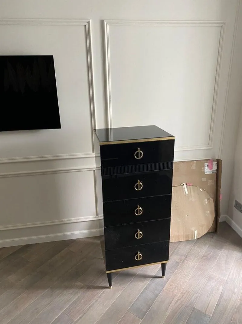 Роскошная мебель! Дизайн и цветовое сочетание – просто улет. Оригинальная форма золотистых ручек завораживает! Зеркальный блеск поверхностей, изящные ножки с золотым декором покорили меня с первого взгляда. Я счастлива!