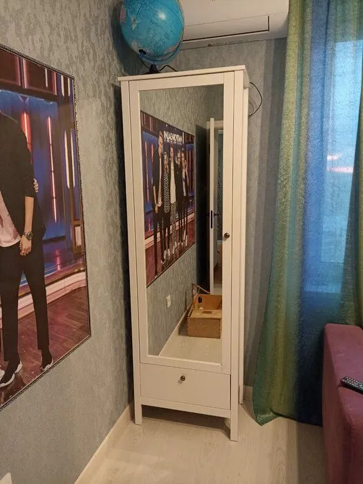 Искала шкафчик ребенку-подростку в комнату. Нужен был неширокий ( т.к. комната небольшая), белый, со штангой под плечики, ящиком, зеркалом и полочкой. Перелопатила тонну шкафов. Этот самый оптимальный вариант оказался и по функционалу и по стоимости. Боялась за зеркало, т.к. в предыдущих отзовах было написано, что оно никак не закрыто с обратной стороны. но все-таки решилась. По зеркалу : оно прямо собрано в фасад, поэтому достаточно крепко и надежно зафиксировано. По фасадам : несмотря на то, что весь шкаф, в том числе и фасады выполнены из ДСП, объемные стоевые по углам создают иллюзию того, что это МДФ с фрезеровкой, т.е. украшают шкаф и не простят его, в отличии от всех других моделей шкафов из ЛДСП. По сборке : сборка достаточна проста, как конструктор, даже я ( женщина) смогла его собрать, единственное несоответствие - это задняя стенка ХДФ. Она выполнена не в размер, и, если следовать точно инструкции, она не встает, т.к. шире. Есть два пособа решения : 1)упилить ХДФ по ширине ( но навряд ли у каждого дома найдется торцовочник или электролобзик); 2) открутить задние стоевые (которые угловые), положить хдф ( кстати тогда она точно встает в паз на верхней крышке), приколотить её по периметру, а затем вновь прикрутить стоевые. Мы так и сделали. Поэтому, когда начнете собирать, обратите на это внимание и не прикручивайте детали №7 до того, пока не поставите заднюю стенку ХДФ. По качеству : выполнено идеально, все кромки в порядке. единственное, что у нас был поврежден фасад ящика, видимо при транспортировке. Написали в поддержку, выслали фото и видео, с нами оперативно связались и обещали выслать поврежденную деталь в ближайшие дни. Пока собрали с поврежденной. В целом советую, Шкаф хороший.