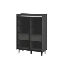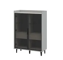 Шкаф комбинированный(низкий) с двумя распашными витринами с тонированным стеклом, алюминиевый профиль 20х20мм; цвет: чёрный брашированный; один выдвижной ящик с двумя секциями;бесшумными направляющими с доводчиком; петли плавного закрывания