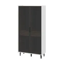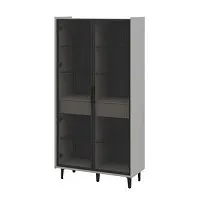 Шкаф комбинированный (высокий) с двумя распашными витринами с тонированным стеклом, алюминиевый профиль 20х20мм; цвет: чёрный брашированный; один выдвижной ящик с двумя секциями; бесшумными направляющими с доводчиком; петли плавного закрывания