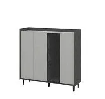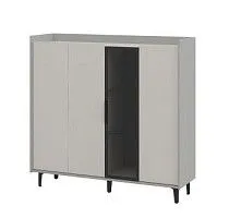 Шкаф с 4-я распашными дверьми, 3 глухих и одна дверь из алюминиевой рамки профилем 20х20мм, цвет: чёрный брашированный с тонированным стеклом две стеклянные полки с тонированным стеклом петли плавного закрывания