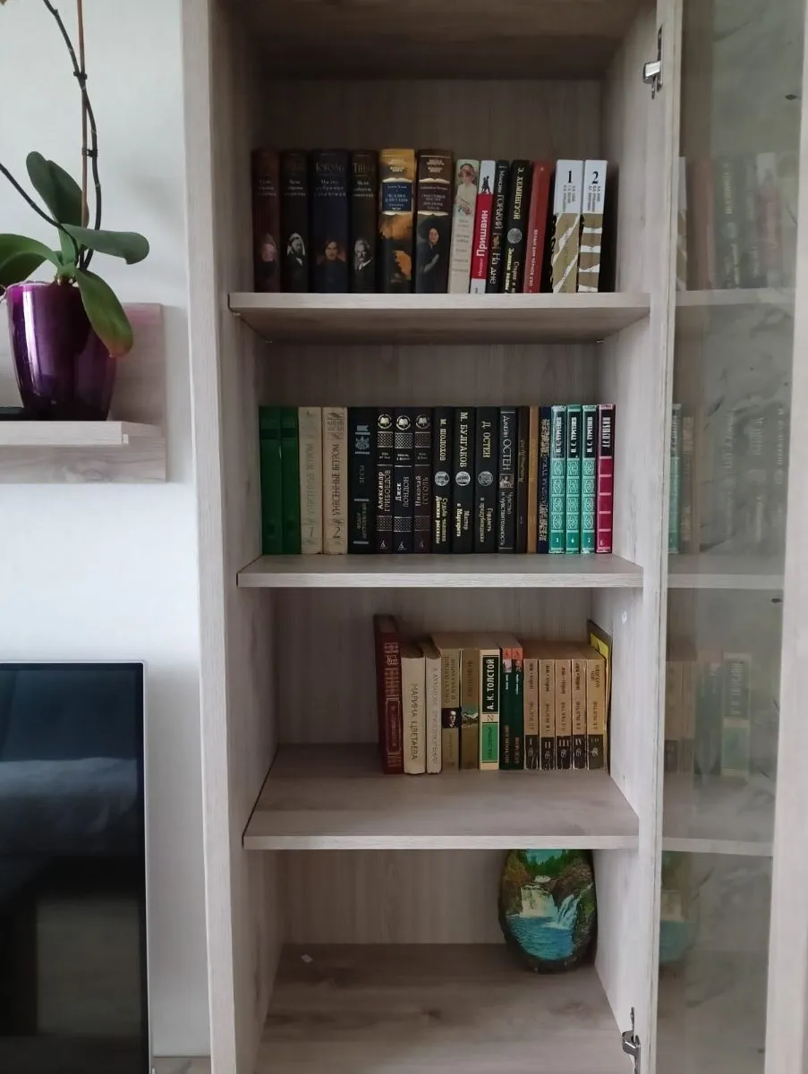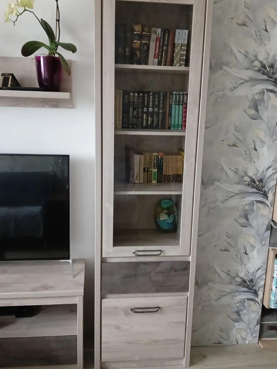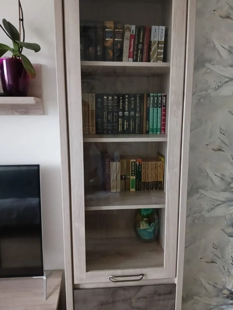 Хороший шкаф за свои деньги, покупали в комплекте с тумбой под телевизор и комодом, получился хороший гарнитур для гостиной