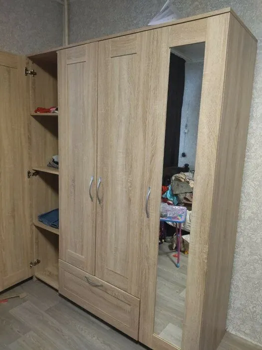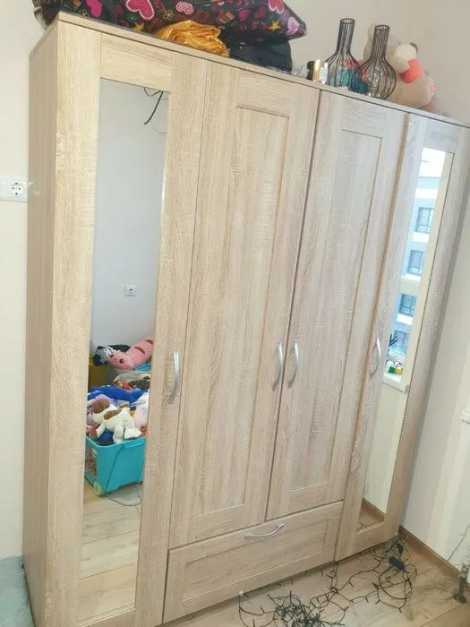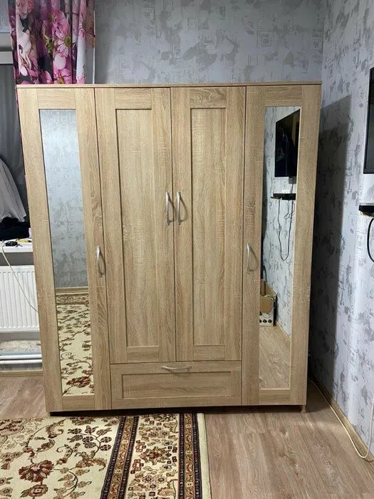 ГУД ЛАКК - знакомая мебель, которую легко купить и собрать! Шкаф ГУД ЛАКК СИРИУС, 4 двери и 1 ящик с зеркалами, 190x156x50 см — элегантность и качество в каждой детали! Серия мебели СИРИУС вдохновлена популярной серией BRIMNES от IKEA, и станет идеальным дополнением вашей квартиры. Почему выбирают Шкаф ГУД ЛАКК СИРИУС, 4 двери и 1 ящик с зеркалами, 190x156x50 см? Шкаф СИРИУС — это стильное и функциональное решение для хранения, которое сочетает в себе практичность, элегантный дизайн и продуманную организацию пространства. Филенчатые фасады придают шкафу изысканный вид, делая его украшением любого интерьера, а зеркало позволит подобрать идеальный образ. Внутри шкафа расположена прочная платяная штанга, на которой можно разместить одежду на плечиках, сохраняя ее в идеальном состоянии. Просторное внутреннее пространство с тремя дверцами позволяет организовать хранение одежды, обуви, аксессуаров или других вещей. Внешний выдвижной ящик с удобной ручкой предназначен для хранения мелких вещей, аксессуаров или белья. Его можно использовать, не открывая дверцы шкафа, что делает доступ к вещам быстрым и удобным. Так же внутри есть 8 полок, которые можно отрегулировать по высоте для разных вещей. Шкаф имеет оптимальные размеры, что делает его подходящим для небольших помещений, таких как спальни, прихожие, гостевые комнаты или даже гардеробные. Он не занимает много места, при этом остается вместительным. Шкаф СИРИУС — это идеальное сочетание стиля, функциональности и доступности. Он станет надежным помощником в организации хранения, создании уютной атмосферы и поддержании порядка в вашем доме. Благодаря своему универсальному дизайну и продуманной конструкции, этот шкаф будет радовать вас долгие годы!
