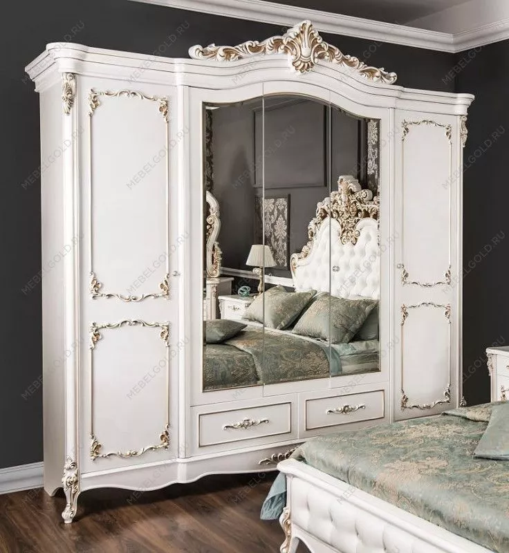 Декоративные элементы, фасады, накладки покрыты золотой патиной и матовым лаком