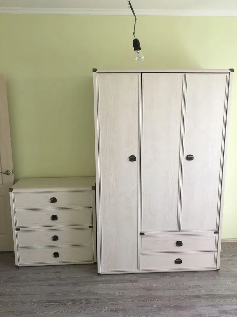 Современная спальня приятного белого оттенка. Доставили вовремя, при осмотре дефектов не обнаружил. Сборкой занимался самостоятельно, но благодаря понятной инструкции справился быстро. Видно, что мебель сделана на совесть и простоит много лет. Спасибо за качественный продукт.