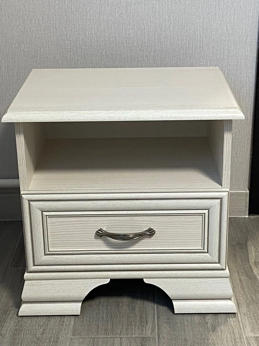 Она изготовлена белорусским брендом Anrex из ЛДСП, а декоративные планки выполнены из МДФ. Прикроватная тумба 1S Tiffany – образец удобства, экологичности и продуманного исполнения. Ее ширина составляет 49 см, что позволит хранить мелкие предметы типа будильника, книги и небольшого ночника.