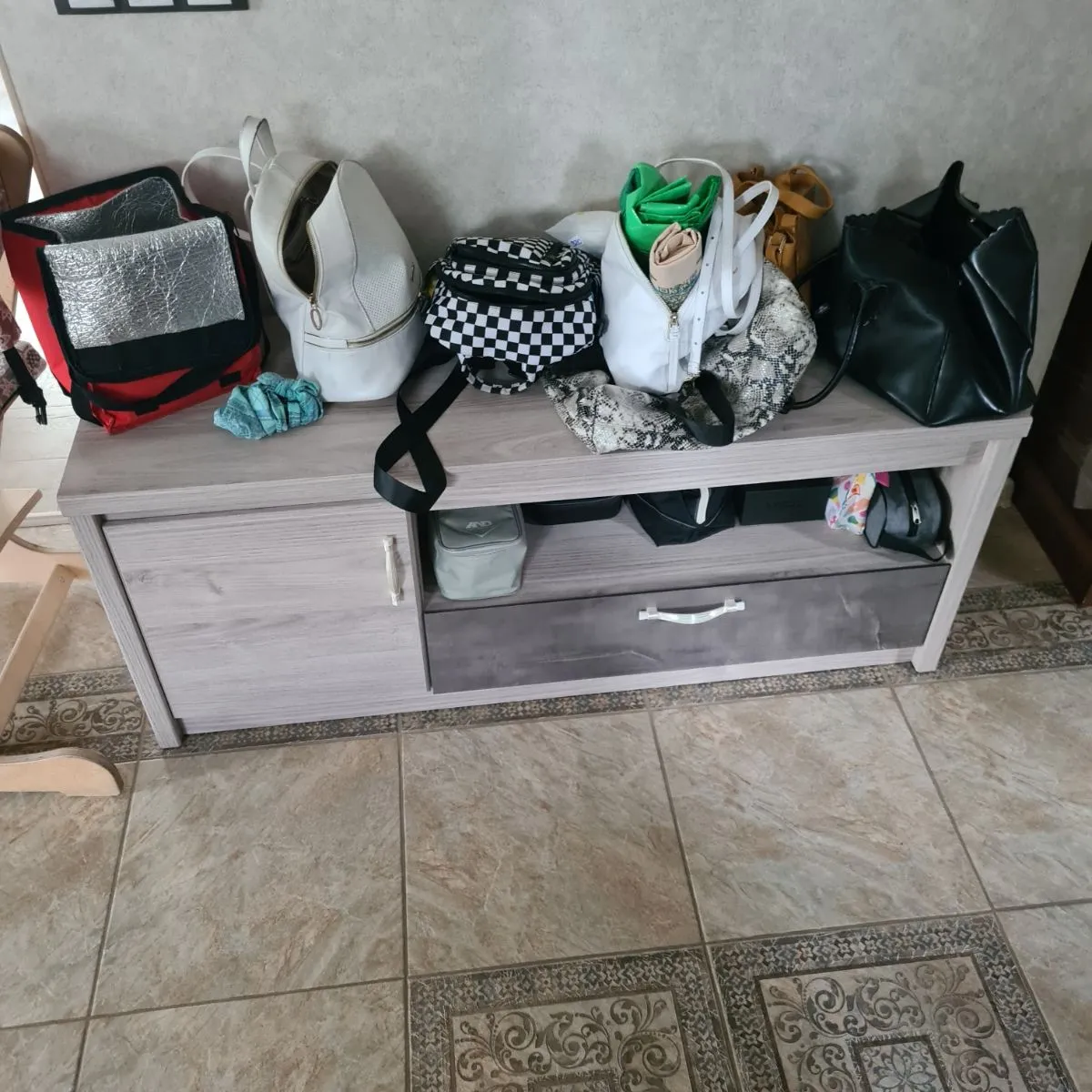 Отличная тумбочка, покупали полный гарнитур - сервант, камод и тумбу. Очень нравятся. Купили вначале сервант и поменяли у него ручки. Поэтому когда купили камод и тумбу пришлось тоже заменить.